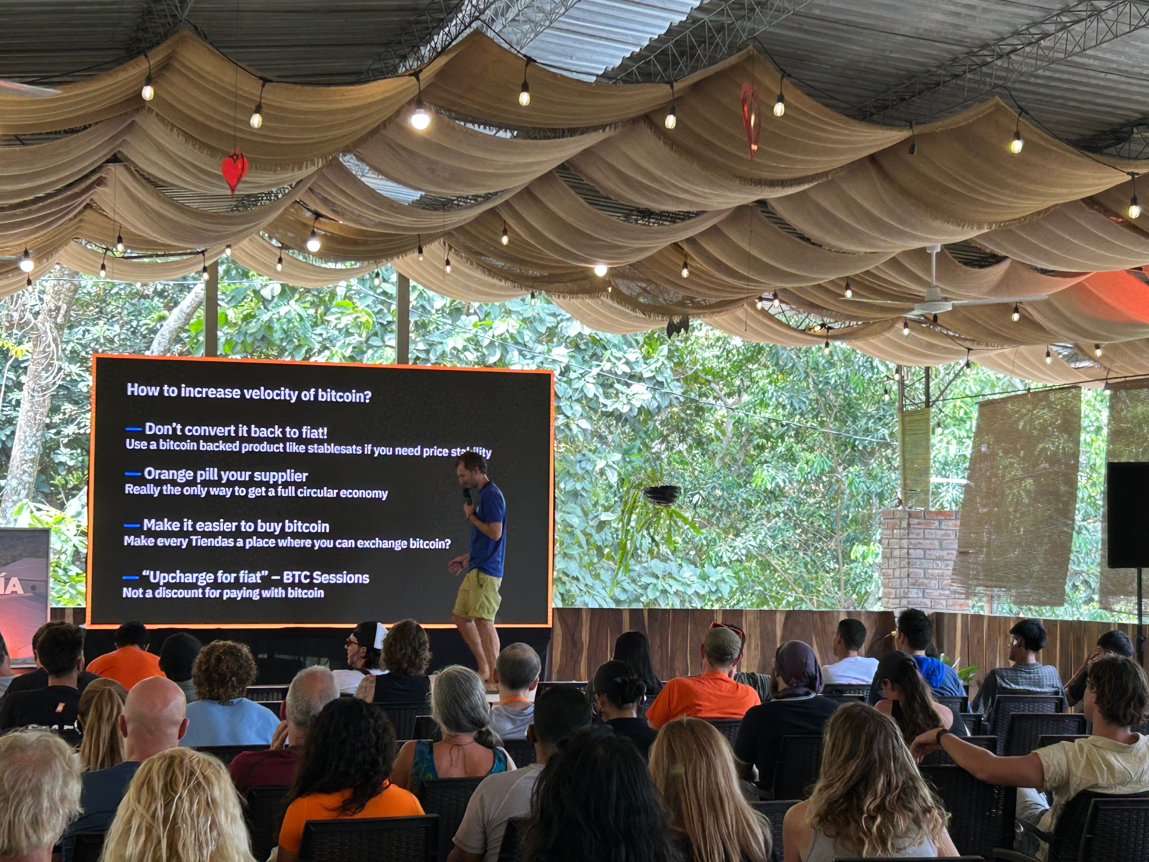 Lots of Bitcoin conferences exist in major cities at fancy convention centers. Most of them are only focused on the “Store of Value” aspect, often featuring Wall Street investors and politicians. Copy-paste vibe, increasingly full of “suitcoiners.”